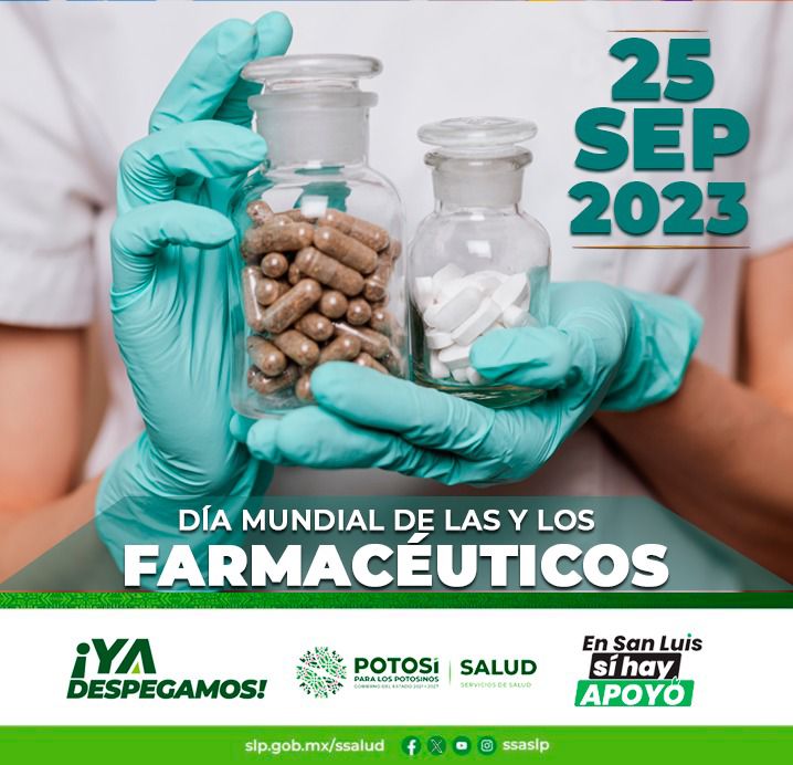 En los Servicios de Salud de San Luis Potosí, se cuenta con 194 Químicos Farmacéuticos laborando en las diferentes Unidades de Salud, este año el lema elegido por la Federación Internacional Farmacéutica (FIP) para la celebración es: “Fortaleciendo los sistemas sanitarios con los farmacéuticos”.