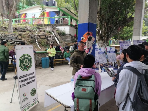 Al mismo tiempo, la Feria de las Carreras Universitarias, permitió fortalecer el acercamiento institucional con la comunidad educativa en materia de prevención del delito, gracias a la apertura del director del plantel, Edgar David Hernández Melgarejo.Durante el evento se contó con la participación aproximada de 180 alumnos, 100 hombres y 80 mujeres, quienes mostraron interés en conocer la oferta educativa en materia de seguridad pública.