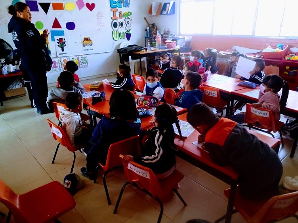 De acuerdo con información de la autoridad delegacional, en esta ocasión elementos de la Secretaría de Seguridad Capitalina llevaron sus charlas a alumnas y alumnos de la localidad de González, específicamente de la telesecundaria y la primaria, ambas llamadas “Niños Héroes”.