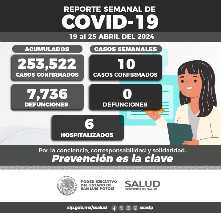 Del 19 al 25 de abril del presente año, se registraron 10 nuevos contagios de COVID-19 confirmando el Comité Estatal para la Seguridad en Salud y los Servicios de Salud 253 mil 522 casos totales de esta enfermedad.