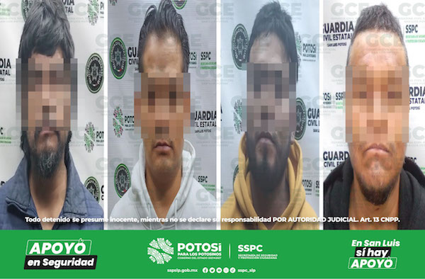 S.L.P.- En respuesta a las denuncias ciudadanas que son atendidas en la Línea de Emergencias 911, elementos de la Guardia Civil Estatal (GCE) detuvieron a cuatro hombres por presuntamente agredir a sus familiares.