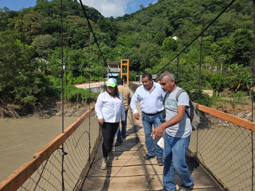 El presidente municipal de Tamazunchale, Adelaido Cabañas Hernández, visitó la Telesecundaria de Vega Larga, una de las instalaciones afectadas por la reciente crecida del río en el municipio.