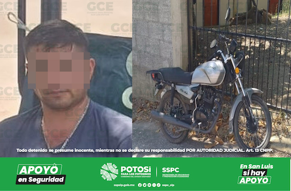 Los hechos tuvieron lugar en la colonia El Olvido, ahí fue detenido Iván “N” de 33 años de edad, después de que cayera en contradicciones sobre el origen de la motocicleta marca Italika, color gris, en la que se desplazaba, misma que coincidía con una unidad reportada como robada y que tras ser consultada en la base de datos de Plataforma México, resultó ser dicho vehículo.