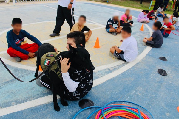 S.L.P.- Una labor fundamental de quienes integran el Agrupamiento K9 de la Guardia Civil Estatal (GCE), es llevar a las familias potosinas el mensaje sobre la importancia del respeto a los seres vivos y el no maltrato, por medio de los trabajos de proximidad social con las infancias, para detectar desde edades tempranas posibles conductas antisociales y/o violentas.