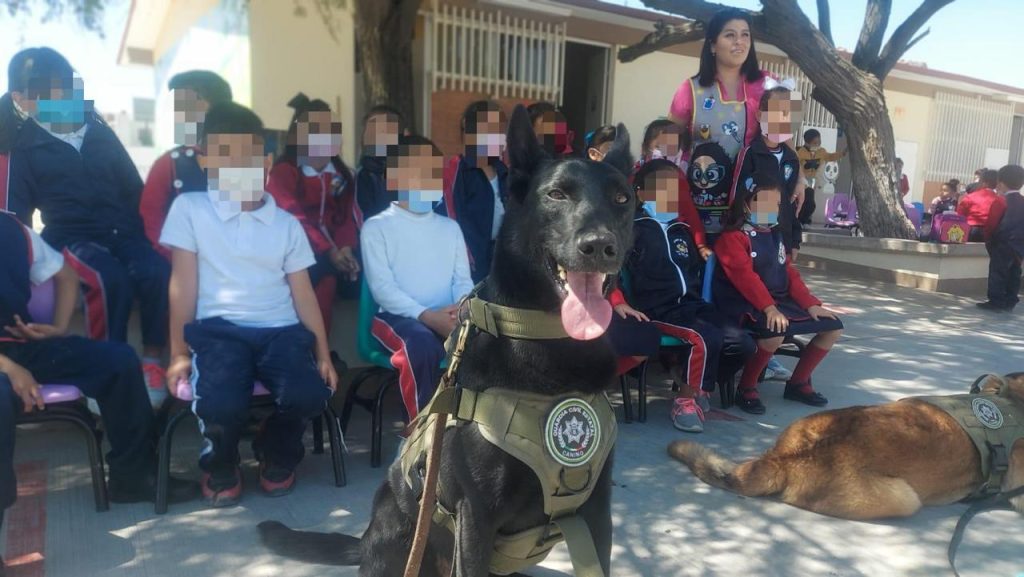 San Luis Potosí, S.L.P.- Una de las labores primordiales de quienes integran el Agrupamiento K9 de la Guardia Civil Estatal (GCE), es promover el respeto a los animales y una tenencia responsable de mascotas; por ello, de manera continua visitan diferentes planteles educativos a fin de generar ese vínculo de amor y respeto por los animalitos, además de enseñar a niñas y niños cómo trabajan los canes entrenados en la policía.