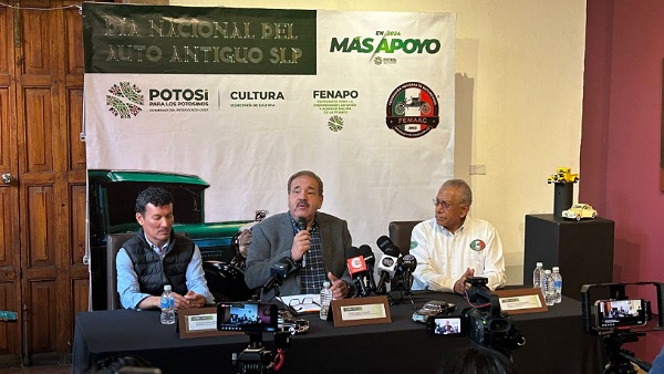 En San Luis Potosí hay más apoyo en cultura en todas sus expresiones, en este marco, en rueda de prensa, el secretario de Cultura, Mario García Valdez; el presidente del Patronato de la Feria Nacional Potosina, Luis Antonio Zamudio Martínez; y el presidente de la Federación Mexicana de Automóviles Antiguos y de Colección SLP, Alejandro Jiménez, dieron a conocer la celebración del Día Nacional del Auto Antiguo SLP 2024, que se llevará a cabo en las instalaciones de la FENAPO, el domingo 18 de febrero de 11:00 a 18:00 h, con entrada libre.