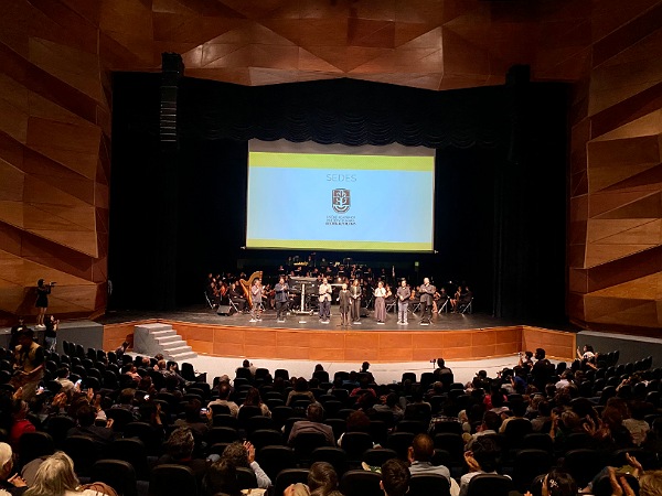 El teatro del Centro Cultural Universitario Bicentenario, (CC200), fue el escenario perfecto para que el público asistente disfrutara de este filme, que fue musicalizado en vivo por la Orquesta Sinfónica Universitaria de la UASLP, y cuya entrada fue libre.