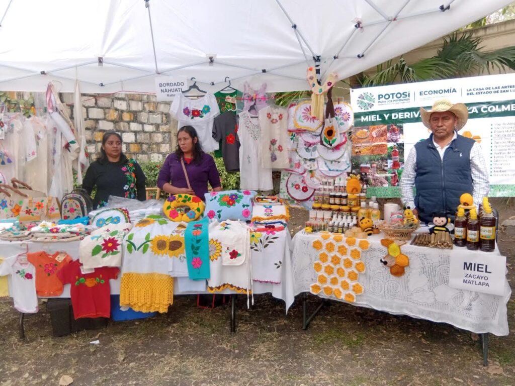 El municipio de Matlapa estuvo dignamente representado por Guadalupe Otero Hernández, bordadora náhuatl de la zona centro; Evangelina Antonio Concepción, bordadora náhuatl de Atlamaxatl; y Martín Marcelino Santiago, productor de miel de la comunidad de Zacayo, quienes compartieron con orgullo su trabajo y tradición con piezas y atuendos emblemáticos que reflejan la riqueza ancestral y el trabajo de manos potosinas.