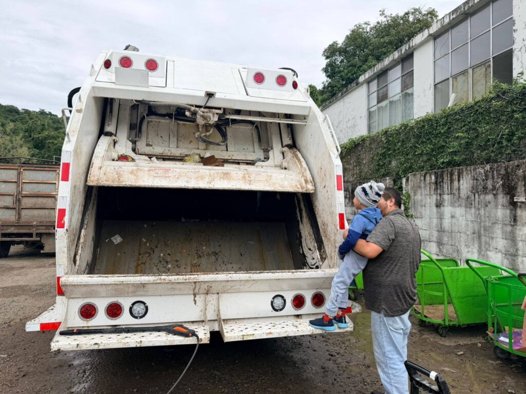 Durante su estancia en el lugar donde se resguardan las unidades de limpieza, Alexander fue recibido con entusiasmo por el personal operativo, particularmente por el chofer encargado de uno de los camiones recolectores. Con gran disposición y calidez, el trabajador le mostró al pequeño el funcionamiento de la unidad, explicando la importancia de la labor que realizan y permitiéndole conocer de cerca la maquinaria que recorre nuestras calles. Este gesto de sencillez por parte del personal operativo subraya la vocación de servicio y la calidad humana que el alcalde Adelaido Cabañas ha instruido como eje rector de su gestión.