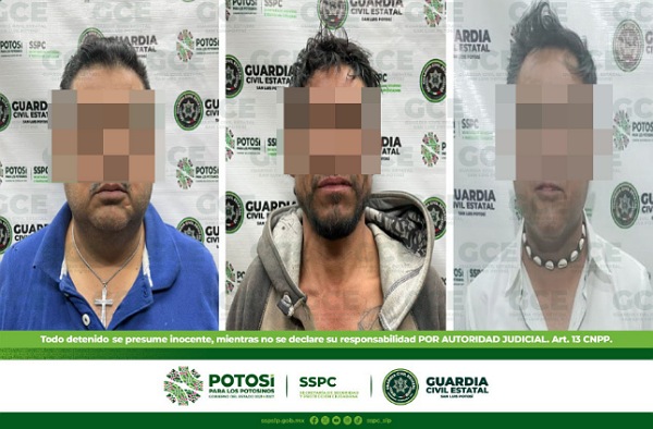 San Luis Potosí, S.L.P.- Cómo resultado de la atención oportuna a los reportes sobre posibles casos de violencia familiar, tres hombres fueron detenidos por Guardia Civil Estatal (GCE), por presuntas agresiones a sus familiares.