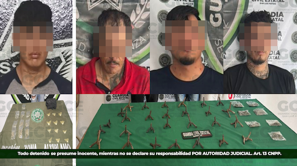 S.L.P.- Mediante el despliegue operativo Altiplano Seguro, efectivos de la Guardia Civil Estatal (GCE) detuvieron a cuatro presuntos criminales, por el probable delito de posesión de droga y portación de objetos prohibidos. Uno de los hechos tuvo lugar en el municipio de Charcas, donde elementos de la GCE detuvieron a Roberto “N” de 50 años, […]