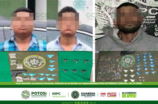 CASI 70 DOSIS DE DROGA SON ASEGURADAS POR GUARDIA CIVIL ESTATAL; HAY TRES DETENIDOS