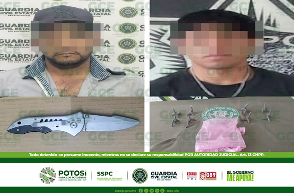 S.L.P.- Operativos de seguridad, efectuados en los municipios de Soledad de Graciano Sánchez y Matehuala, permitieron que la Guardia Civil Estatal (GCE) detuviera a dos presuntos con armas prohibidas. En el municipio de Soledad de Graciano Sánchez, sobre la colonia San Francisco, Ricardo “N” de 37 años de edad, fue detenido con una navaja de […]