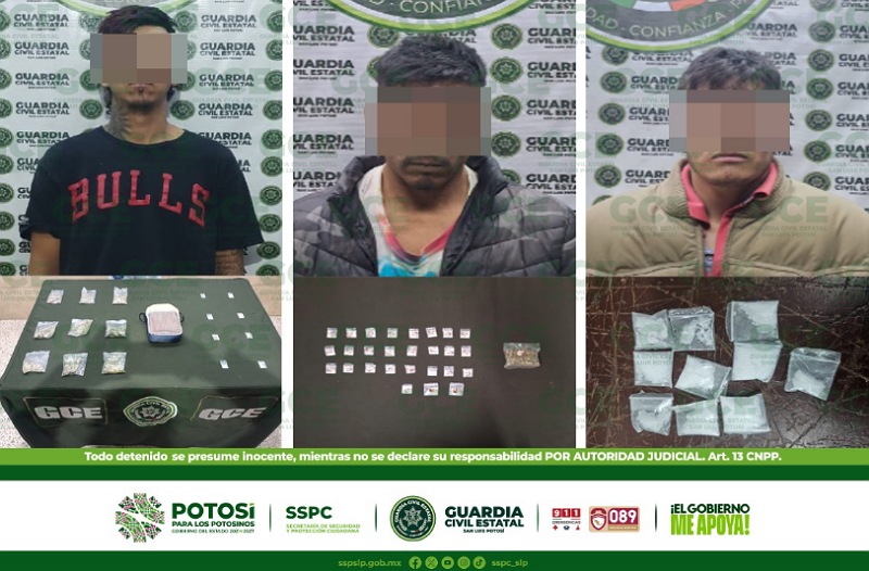 S.L.P.- La aplicación del Plan Integral de Seguridad en los 59 municipios de la entidad, permitió la detención de tres presuntos narcomenudistas y el aseguramiento de 55 dosis de enervantes. En la capital potosina, elementos de la Guardia Civil Estatal detuvieron a Moisés “N” de 30 años de edad, quien fue asegurado con 9 bolsas […]