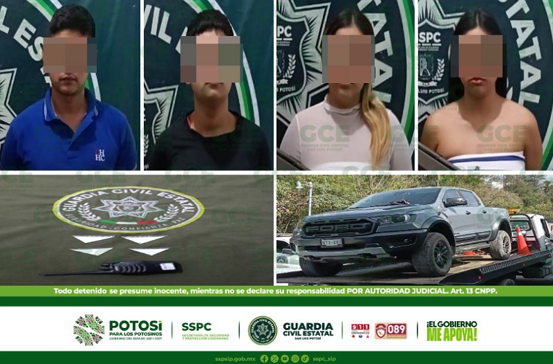 Ciudad Valles, S.L.P.- Agentes de la Guardia Civil Estatal detuvieron a cuatro jóvenes dedicados al “halconeo” cuando seguían unidades policiales. Se les aseguró droga, una camioneta robada y equipo de radiocomunicación. Dentro de las acciones operativas desplegadas por elementos de la Guardia Civil Estatal en la zona Huasteca, elementos estatales, al realizar recorridos de seguridad […]