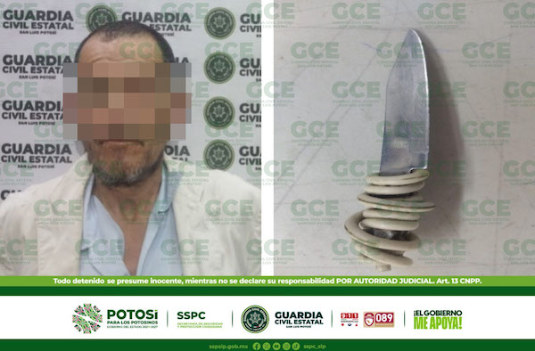 GUARDIA CIVIL ESTATAL ARRESTA A PRESUNTO QUE PORTABA UN CUCHILLO