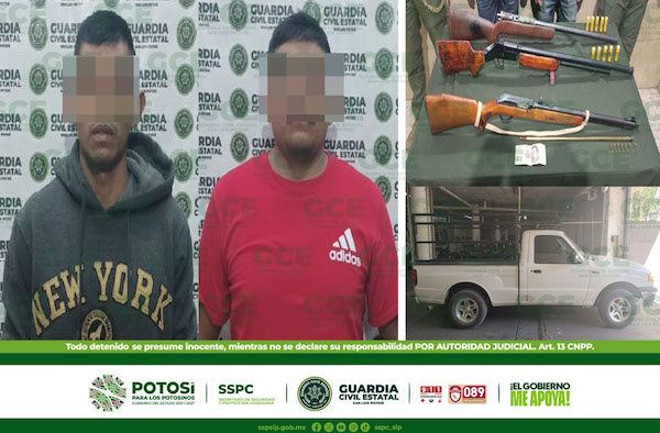 POR EL PROBABLE DELITO DE PORTACIÓN DE ARMAS DE FUEGO, PRESUNTOS SON DETENIDOS POR GUARDIA CIVIL ESTATAL