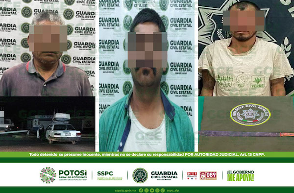 S.L.P.- En diferentes acciones, elementos de la Guardia Civil Estatal (GCE) detuvieron a tres hombres, por el supuesto delito de daños. El primer hecho tuvo lugar en la colonia Imperio Azteca, del municipio de Villa de Pozos, en donde elementos estatales atendieron el reporte de la víctima, quien refirió que Fernando “N” de 27 años […]