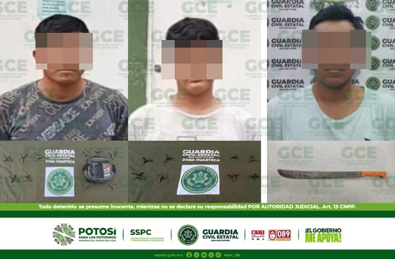 TRAS SORPRENDERLES CON ARMAS PUNZOCORTANTES Y PROHIBIDAS, TRES HOMBRES SON DETENIDOS POR GUARDIA CIVIL ESTATAL