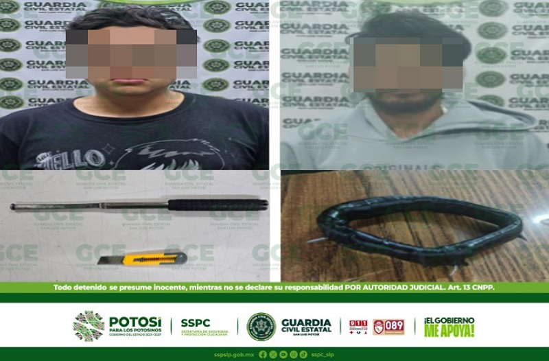 San Luis Potosí, S.L.P.- Agentes de la Guardia Civil Estatal (GCE) detuvieron a dos presuntos, tras asegurarles armas prohibidas. Durante los operativos de seguridad en la capital potosina, efectivos de la Guardia Civil Estatal (GCE) detuvieron a dos individuos, el primero ubicado en la colonia Los Salazares, tras asegurarle un bastón retráctil y un cúter, […]