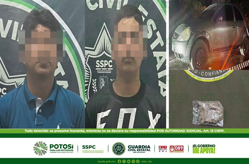 Ciudad Valles, S.L.P.- Operativos de seguridad desdoblados por la Guardia Civil Estatal, en la colonia Moctezuma, derivaron en la detención de dos jóvenes, por probables delitos contra la seguridad y posesión de droga. Las autoridades preventivas detectaron a los tripulantes de un vehículo Ford, modelo 2002, color gris, con placas de Tamaulipas, el cual era […]