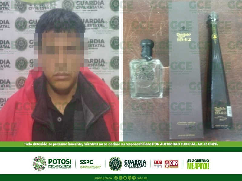 POR HURTAR DOS BOTELLAS DE ALCOHOL, PRESUNTO ES DETENIDO POR GUARDIA CIVIL ESTATAL