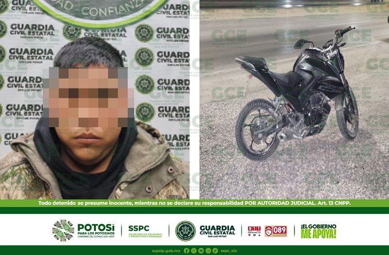 Soledad de Graciano Sánchez, S.L.P.- En el marco de las acciones de seguridad, desplegadas en el sector oriente, para el combate al robo de vehículos, un motociclista fue detenido, por no poder acreditar la propiedad legal de la unidad en la que se desplazaba, misma que tenía reporte de robo vigente. El detenido se identificó […]