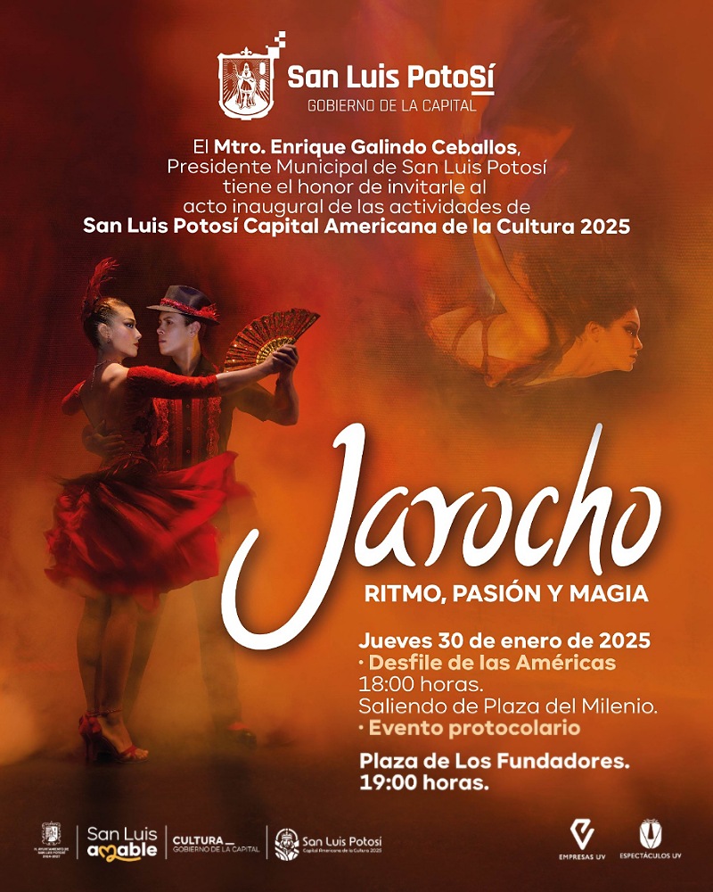 Previo a la presentación de “Jarocho” se realiza el “Desfile de las Américas”, con un contingente superior a las 500 personas de grupos folklóricos y artistas, y el acto protocolario con autoridades. El Gobierno de la Capital invita al acto inaugural de las actividades de San Luis Potosí como Capital Americana de la Cultura 2025 el próximo […]