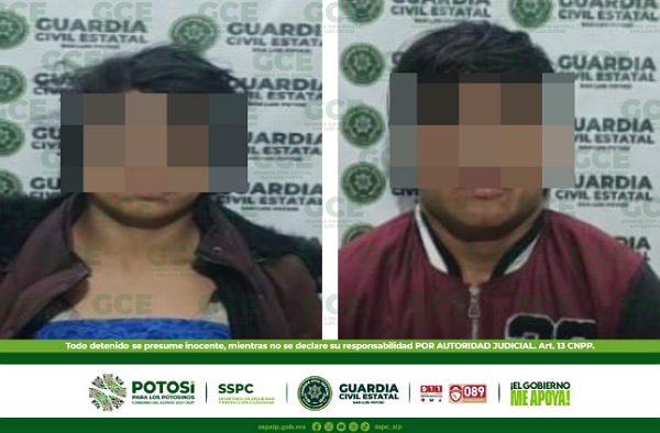 PAREJA ES DETENIDA POR GUARDIA CIVIL ESTATAL, TRAS ALLANAR UNA PROPIEDAD EN LA CAPITAL POTOSINA