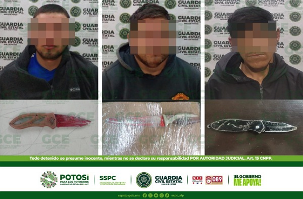 POR LA PORTACIÓN DE ARMAS BLANCAS, TRES HOMBRES SON DETENIDOS POR GUARDIA CIVIL ESTATAL