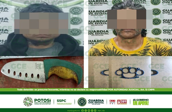 San Luis Potosí, S.L.P.- Como resultado de los trabajos de seguridad y vigilancia, desdoblados en la capital potosina, dos hombres resultaron detenidos, por el probable delito de portación de objetos y armas prohibidas. Uno de los detenidos se ubicó en la colonia Hermenegildo J. Aldana, se trata de Héctor “N” de 25 años de edad, […]