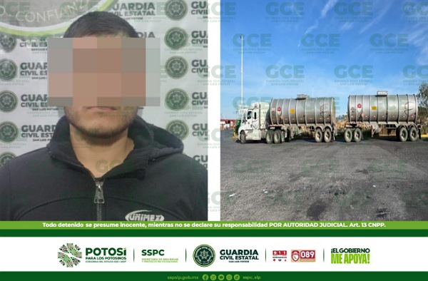 DIVISIÓN CAMINOS DE LA GUARDIA CIVIL ESTATAL DETIENE A PRESUNTO POR TRÁFICO ILEGAL DE 70 MIL LITROS DE HIDROCARBURO