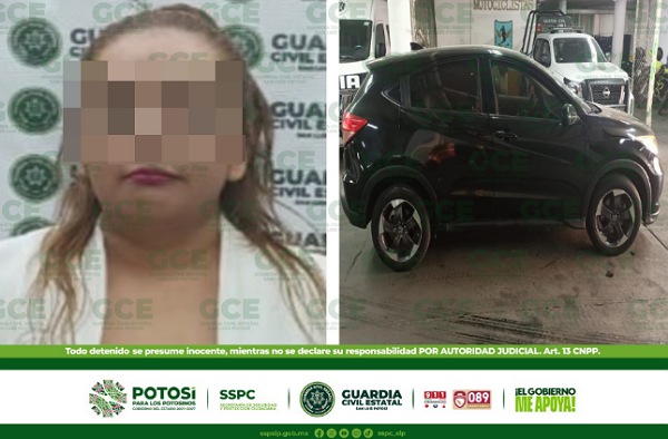 San Luis Potosí, S.L.P.- Agentes de la Guardia Civil Estatal (GCE) detuvieron a una mujer, después de que se le asegurara un automotor que presentaba alteración en sus números de serie confidenciales. Los hechos tuvieron lugar en el fraccionamiento Tangamanga, sitio donde fue detenida Luz “N” de 40 años de edad, quien se desplazaba a […]
