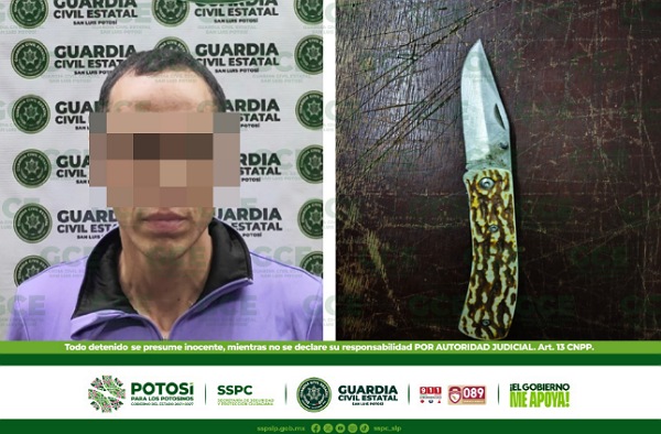 San Luis Potosí, S.L.P.- Patrullajes preventivos y disuasivos, efectuados por la Guardia Civil Estatal (GCE) derivaron en la detención de un hombre, por el probable delito de portación de una navaja, entre sus pertenencias. Los hechos tuvieron lugar en la zona centro de la capital potosina, durante los recorridos sobre la avenida 20 de Noviembre, […]