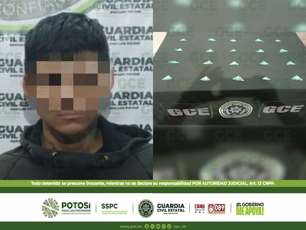 San Luis Potosí, S.L.P.- Elementos de la Guardia Civil Estatal, al efectuar labores de vigilancia y preventivas, realizaron la detención de un hombre al norte de la capital potosina, señalado de “halconear” y vender droga. Derivado de los trabajos de inteligencia y acciones en campo realizados por elementos de la Guardia Civil Estatal, se logró […]