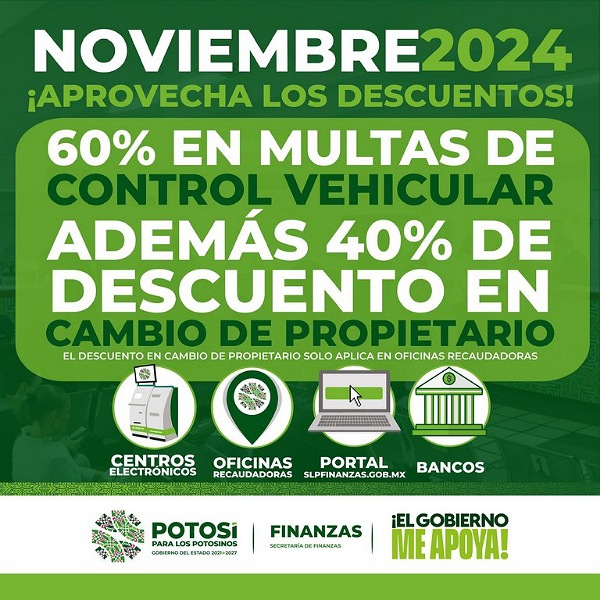 Durante noviembre, el Gobierno del Estado a través de la Secretaría de Finanzas (Sefin), brindará más apoyo a las y los potosinos, mediante un programa de descuentos, de 60 por ciento en multas de control vehicular y 40 por ciento en cambio de propietario con el objetivo de que más personas accedan a los programas […]