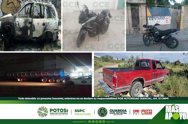 ONCE UNIDADES CON REPORTE DE ROBO SON RECUPERADAS POR GUARDIA CIVIL ESTATAL; HAY UN DETENIDO