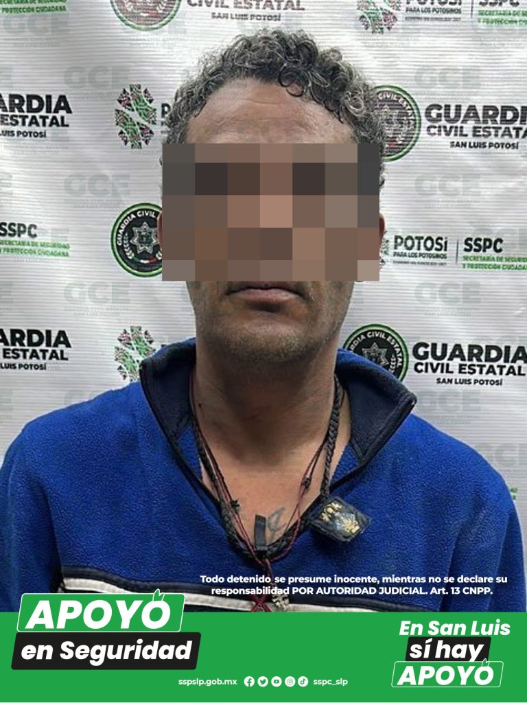 San Luis Potosí, S.L.P.- Oficiales de la Guardia Civil Estatal (GCE) detuvieron a un presunto en la zona centro de la capital, luego de que su esposa indicara haber sido víctima de violencia familiar por dicha persona. Autoridades estatales atendieron un reporte proveniente del Centro de Control, Comando, Comunicaciones y Comunicaciones (C-4), sobre un hecho […]