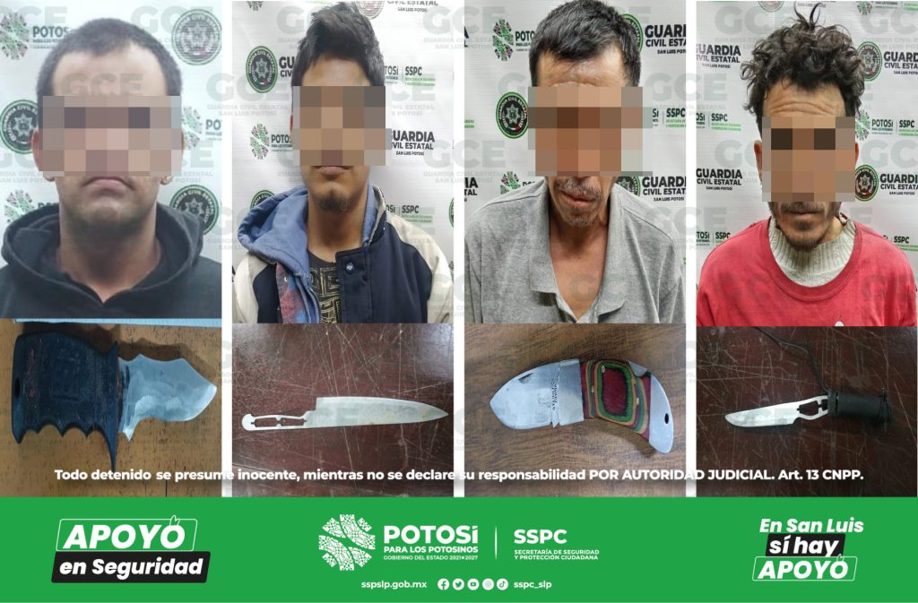 S.L.P.- En distintas ubicaciones, policías de la Guardia Civil Estatal (GCE) detuvieron a cuatro individuos a quienes se les aseguraron armas punzocortantes; los hechos fueron en la capital potosina y en el municipio de Soledad de Graciano Sánchez. Uno de los hechos fue en la colonia Simón Díaz ahí fue detenido Leonardo “N” de 22 […]
