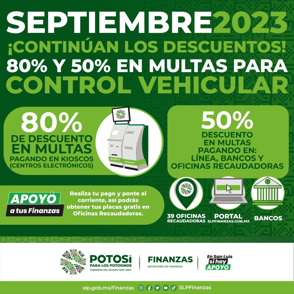 La Secretaría de Finanzas amplía el programa de descuentos en multas de control vehicular para que más potosinas y potosinos accedan al apoyo de placas gratuitas A fin de que más potosinas y potosinos accedan al programa estatal de placas gratuitas, la Secretaría de Finanzas de Gobierno del Estado, extenderá durante septiembre el programa de […]
