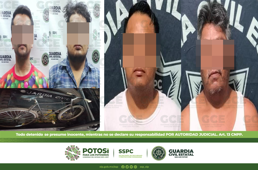 S.L.P.- Mediante los diferentes dispositivos de seguridad y vigilancia, encaminados a preservar la paz pública, oficiales de la Guardia Civil Estatal (GCE) efectuaron la detención de cuatro hombres por presunta posesión de estupefacientes. En la capital potosina fue detenido Juan “N” de 34 años de edad, después de que fuera sorprendido en la colonia Satélite […]