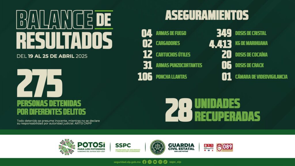 San Luis Potosí S.L.P.- En el marco de los dispositivos de prevención y vigilancia que son desplegados por tierra y aire a cargo de la Guardia Civil Estatal, durante las últimas 24 horas fueron recuperadas dos camionetas con reporte de robo, en una de las cuales se localizaron cartuchos útiles. Como parte de una acción […]