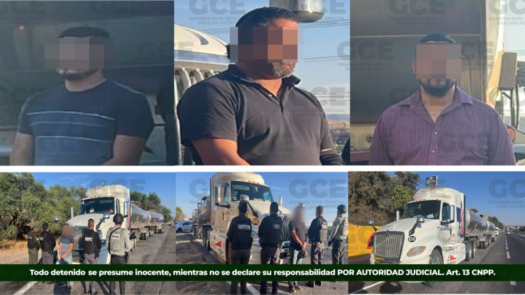 San Luis Potosí, S.L.P.- Como resultado de la coordinación interinstitucional entre División Caminos de la Guardia Civil Estatal, Guardia Nacional y Secretaría de Seguridad Federal, permitieron la detención de tres personas, señaladas del probable delito de tráfico de más de 33 mil litros de hidrocarburo. Las autoridades preventivas desplegaron un operativo en la carretera Querétaro-San […]
