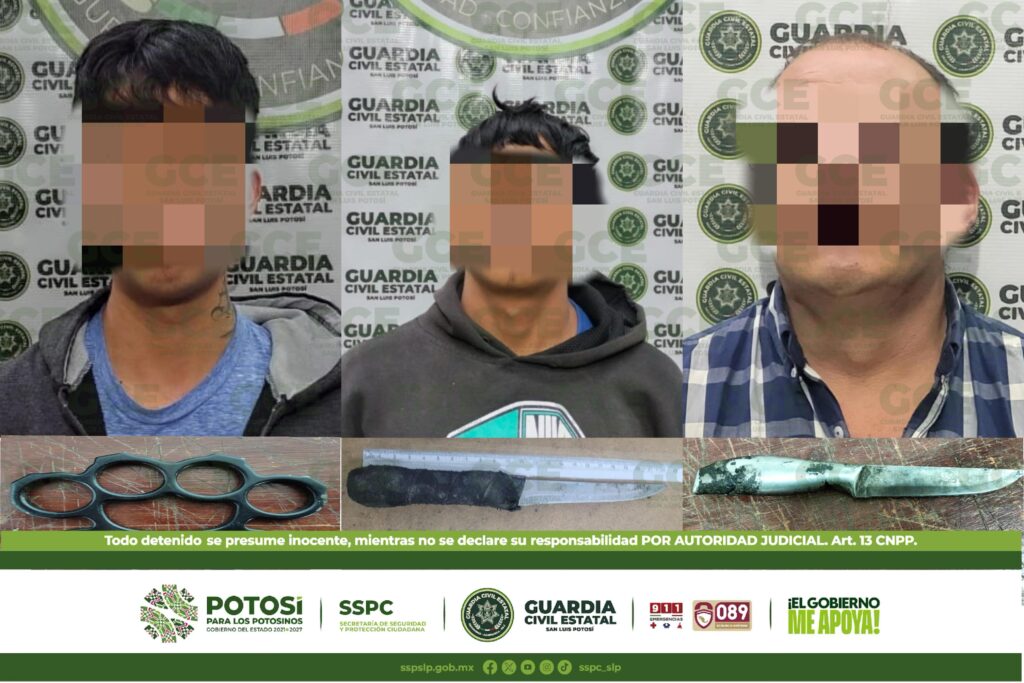 San Luis Potosí, S.L.P.- En diferentes puntos de la capital potosina, elementos de la Guardia Civil Estatal (GCE) detuvieron a tres hombres, por el probable delito de portación de armas blancas, tras ser captados por las autoridades, deambulando con los objetos punzocortantes. Uno de los detenidos fue ubicado en la colonia Los Magueyes, se trata […]