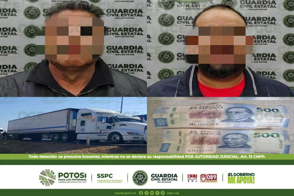 S.L.P.- Dos personas fueron remitidos ante las autoridades correspondientes, después de que oficiales de la Guardia Civil Estatal (GCE) los sorprendieran a bordo de un tractocamión que se desplazaba erráticamente, lo que ponía en riesgo su integridad y la de terceros, además de ofrecer dinero a los agentes para que los dejaran libres. Elementos estatales, […]