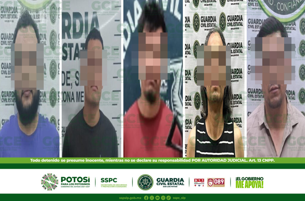 S.L.P.- En atención a los reportes ciudadanos que son recibidos en la Línea de Emergencias 9-1-1, efectivos de la Guardia Civil Estatal (GCE) detuvieron a cinco presuntos agresores, tras denuncias por probable violencia familiar. Uno de los hechos se registró al exterior del Hospital Central, próximo a Zona Universitaria, en donde la agraviada se entrevistó […]