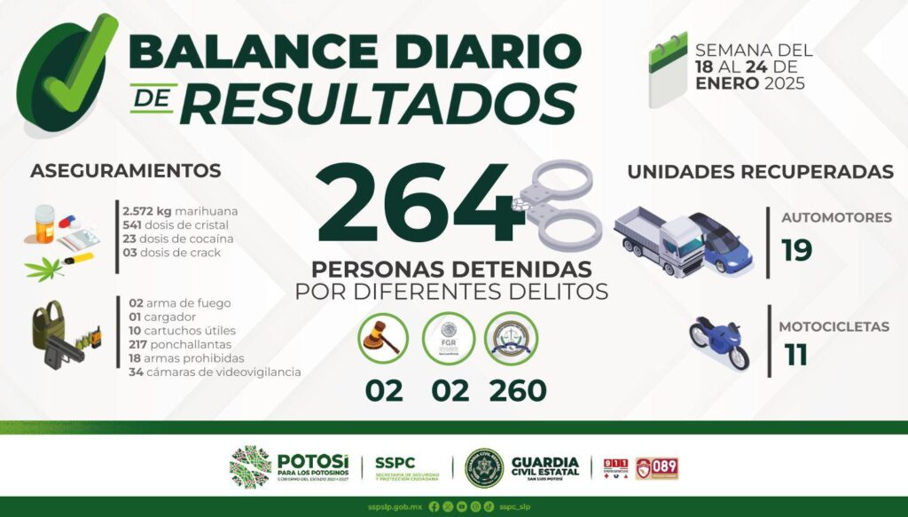 –Destaca el aseguramiento de 34 cámaras, de diferentes redes de grupos delictivos que fueron desmanteladas en la región Altiplano y en la capital potosina. -En el municipio de Guadalcázar, una importante célula criminal fue desarticulada, mediante las labores de inteligencia. S.L.P.- Con resultados contundentes en materia de seguridad y combate a la delincuencia, es como la […]