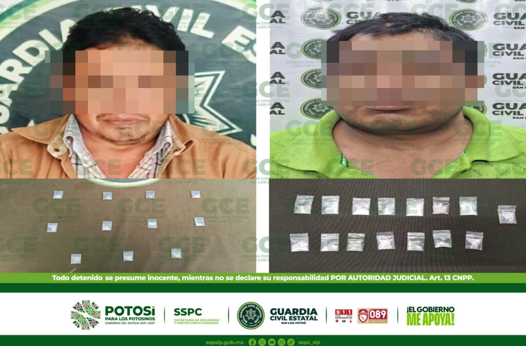 S.L.P.- Elementos de la Guardia Civil Estatal detuvieron a dos presuntos narcomenudistas y aseguraron 26 dosis de enervantes en distintos hechos, como parte de los distintos dispositivos preventivos y de seguridad en toda la entidad. Agentes de Guardia Civil Estatal, dentro del operativo Huasteca Segura detuvieron a una persona en presuntas funciones de distribución de […]