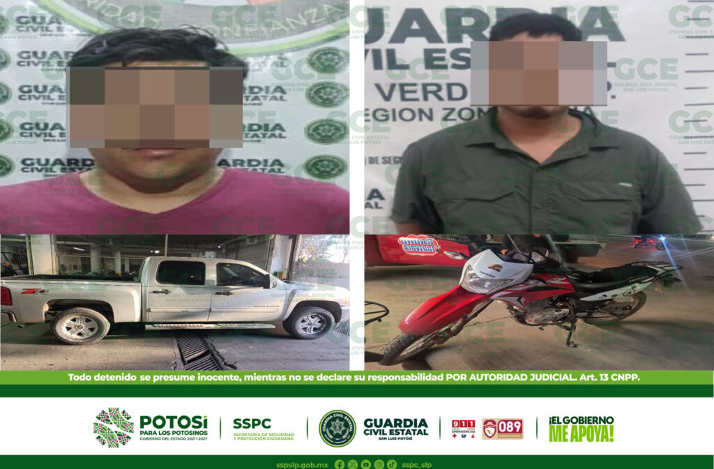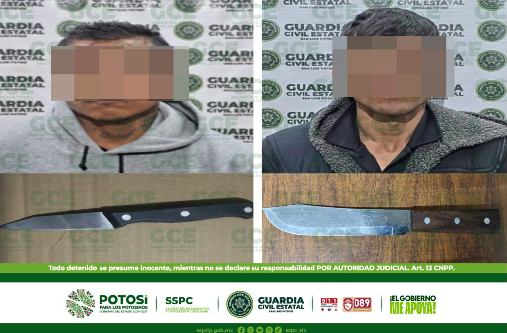 San Luis Potosí, S.L.P.- En diferentes acciones, policías de la Guardia Civil Estatal (GCE) detuvieron a dos hombres en la capital potosina, por el probable delito de portación de armas prohibidas. El primer suceso tuvo lugar en la colonia División del Norte, en donde efectivos de la GCE detuvieron a José “N” de 20 años […]