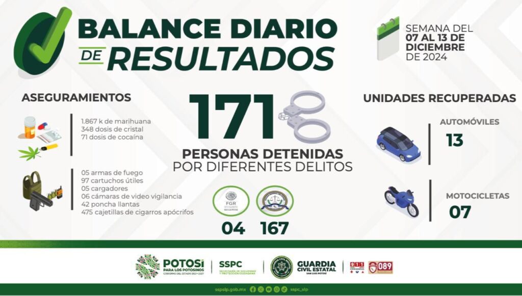 -Con el arranque de los operativos “Guadalupe-Reyes” y “Bienvenido Paisano”, los trabajos preventivos se intensifican en las cuatro regiones del Estado. S.L.P.- La Secretaría de Seguridad y Protección Ciudadana del Estado, arrancó los operativos decembrinos, enfocados en la prevención, contención y disuasión de hechos delictivos, complemento del resto de los dispositivos en las cuatro regiones […]